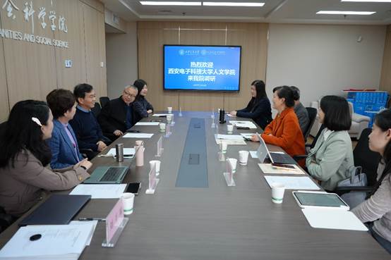 2025年11月12日下午,西安电子科技大学人文学院党委副书记史耀媛一行来我院调研交流。双方围绕新文科背景下的人才培养模式、招生工作创新以及科技伦理教学与科研等议题展开深入座谈。座谈会在兴庆校区主E714会议室举行,由我院哲学系党支部书记常新教授主持。我院副院长张顺教授、哲学系王小红教授、丁晓军副教授、陈夕朦副教授、本科教务秘书刘千瑞参会。